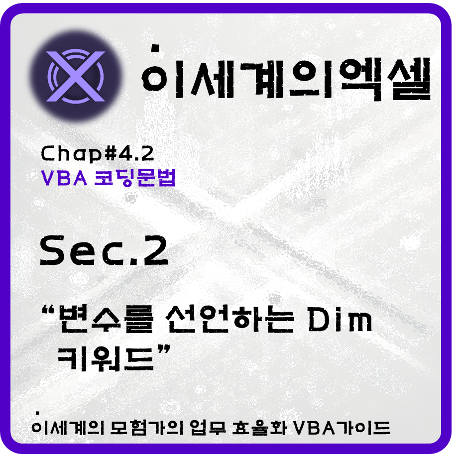 Dim(Dimension)은 VBA에서 변수를 선언할 때 사용하는 핵심 키워드이다. 메모리에 변수를 위한 공간을 예약하고, 컴파일러에게 해당 이름이 변수임을 알린다. 명시적 선언을 통해 가독성과 디버깅 효율을 높일 수 있다.