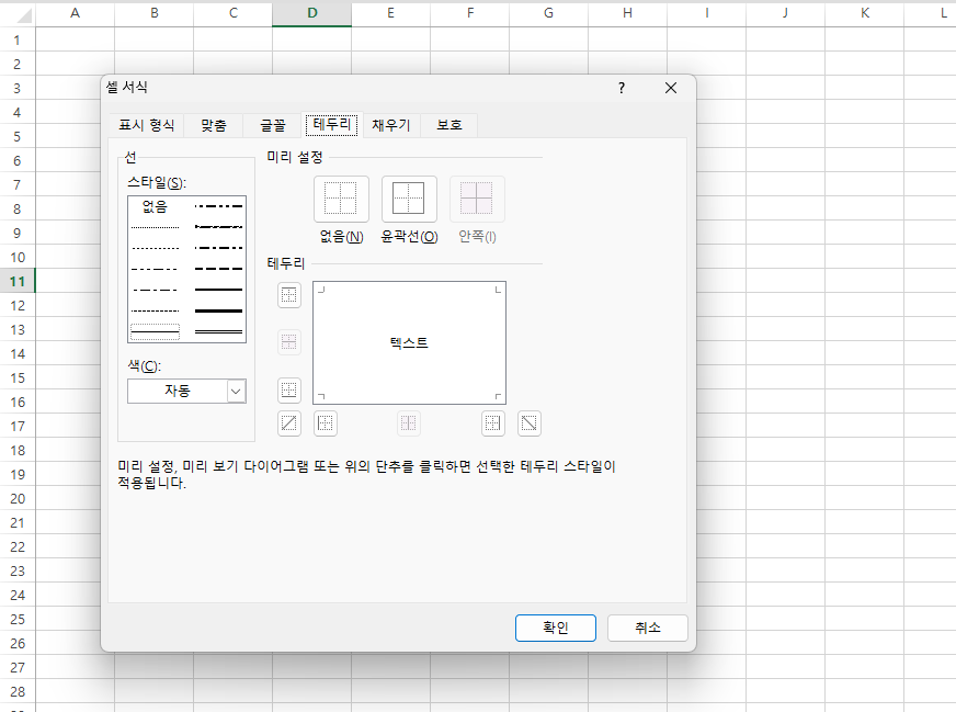 3단계: 테두리 탭으로 이동하여 셀의 테두리를 설정합니다. 여기서 선 스타일, 색상, 그리고 테두리 위치를 지정할 수 있습니다. 테두리는 셀 간의 구분을 명확히 해주어 데이터를 보다 체계적으로 관리할 수 있게 해줍니다.