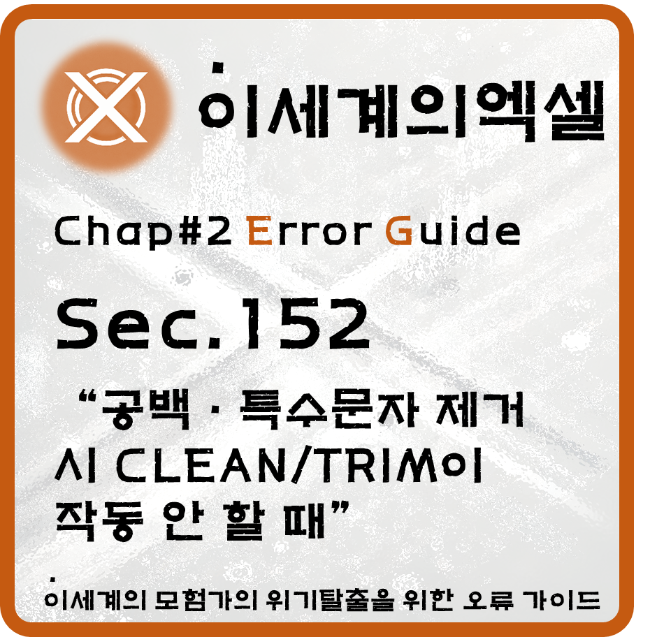 엑셀의 CLEAN 함수는 ASCII 코드 0~31의 인쇄 불가능한 제어 문자만 제거하는 기능을 합니다. 이는 즉, 유니코드 문자나 특수 HTML 문자와 같은 기타 비표준 문자를 제거하지 못하는 한계가 있습니다. 또한 TRIM 함수는 텍스트 양 끝과 중간에 연속적으로 반복된 표준 공백(ASCII 32번)만 처리할 수 있기 때문에 비표준 공백 문자나 HTML 복사 과정에서 유입된 특수한 공백(NBSP, 제로 너비 공백 등)은 남겨지게 됩니다.