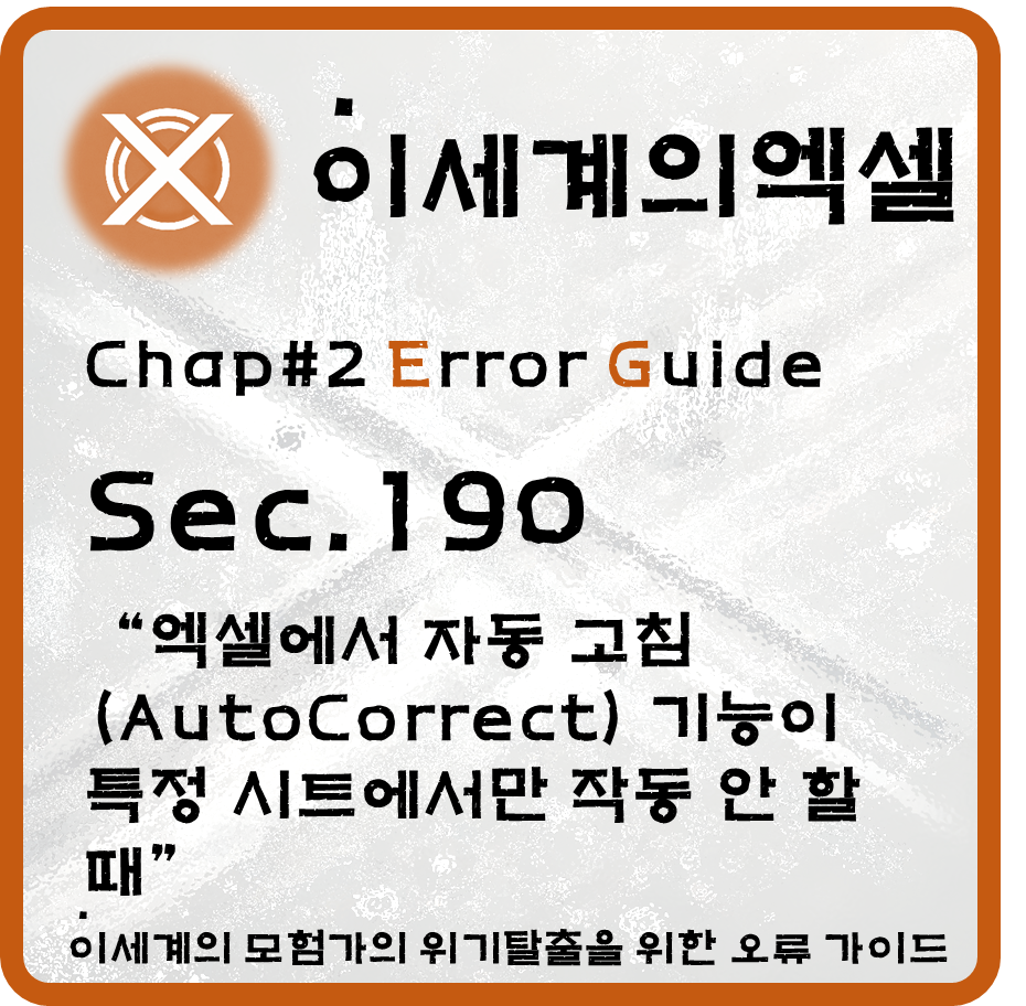 엑셀을 사용하다 보면 자주 입력하는 단어나 문장을 자동으로 고쳐주는 자동 고침(AutoCorrect) 기능이 큰 도움이 됩니다. 그런데 간혹 이 기능이 특정 시트에서만 비활성화된 것처럼 보이는 현상이 발생할 때가 있습니다. 설정을 확인해봐도 전체적으로는 켜져 있는데 유독 일부 시트에서만 작동하지 않는 경우라면, 당황스럽고 작업 흐름에도 영향을 줄 수밖에 없습니다.