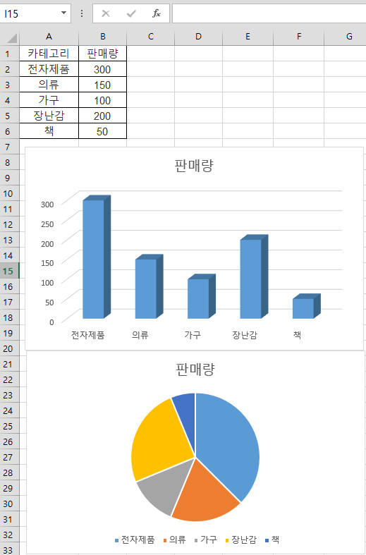 여기서는 막대형 차트와 원형 차트를 생성하는 방법을 다룹니다.