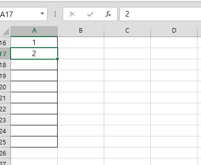 4) 드래그하여 선택된 범위에 따라 A3, A4 등의 셀에 '3', '4' 등 연속된 숫자가 자동으로 입력됩니다.