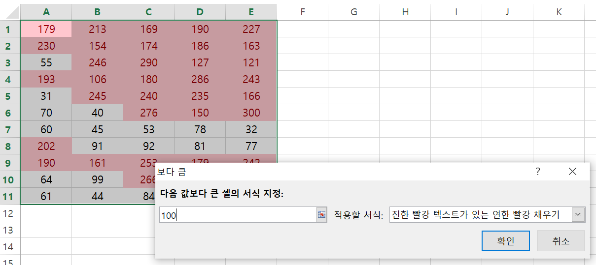 엑셀에서 조건부 서식을 설정하는 방법은 다음과 같습니다: