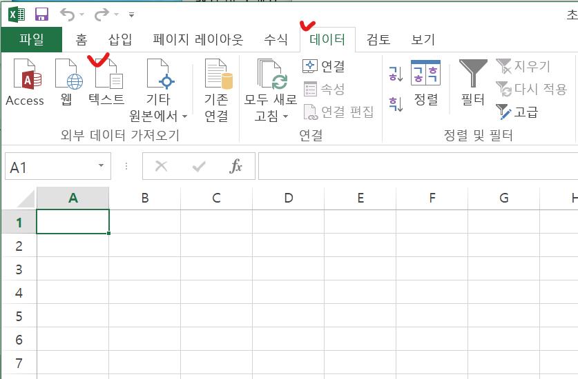 - 엑셀 상단 메뉴에서 데이터 탭을 클릭합니다. 이 메뉴에서는 외부 데이터를 불러오는 다양한 옵션을 제공합니다.