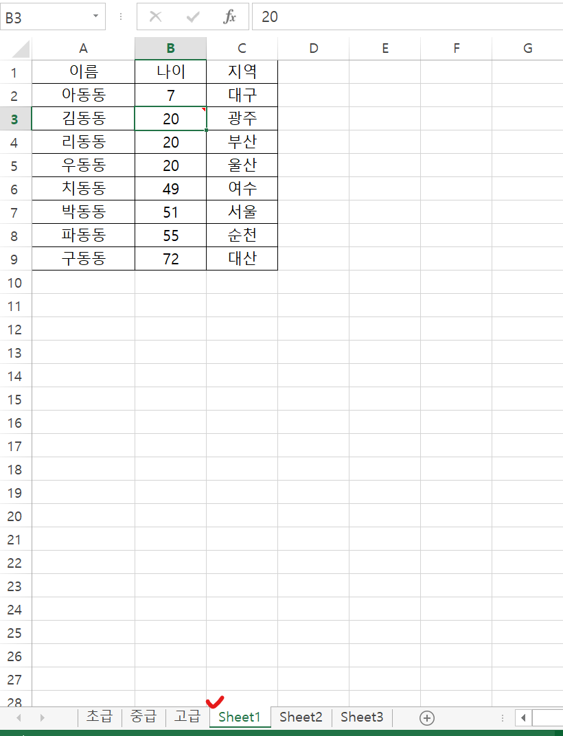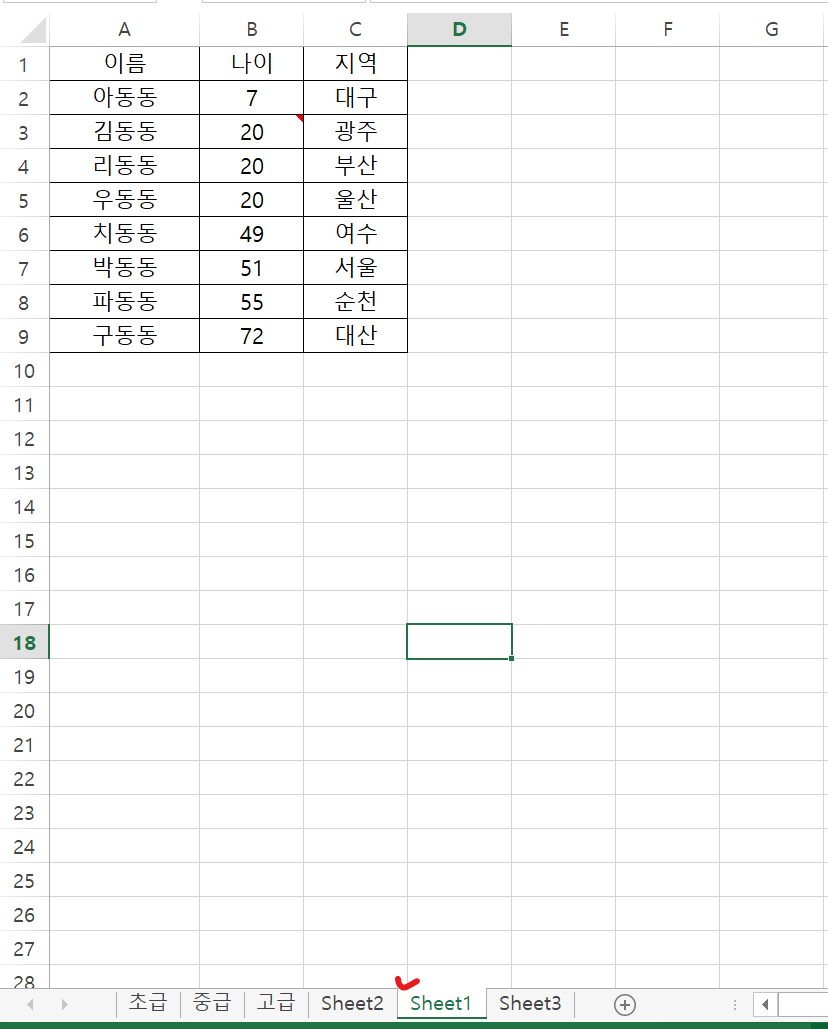 아래의 데이터를 사용하여 현재 시트를 복사한 후, 동일한 데이터를 가진 새로운 시트를 만들어 보세요. 그런 다음, 복사한 시트를 다른 위치로 이동하여 워크시트 이동과 복사 기능을 함께 실습해 보세요. 이를 통해 워크시트를 효율적으로 관리하는 방법을 익힐 수 있습니다.