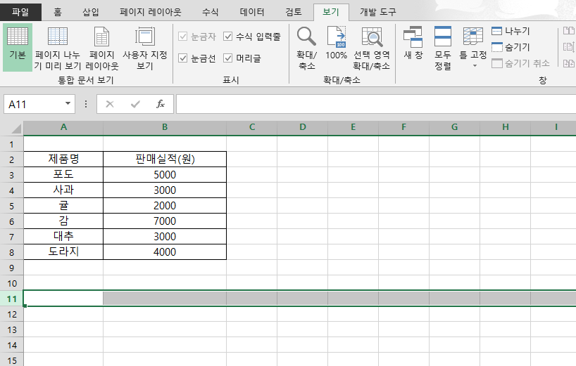 3) 창 분할(나누기) 해제 - 창 분할을 해제하고 싶을 때는 다시 보기 탭으로 이동하여 창 분할 해제 버튼을 클릭하면, 분할된 화면이 원래 상태로 돌아옵니다.