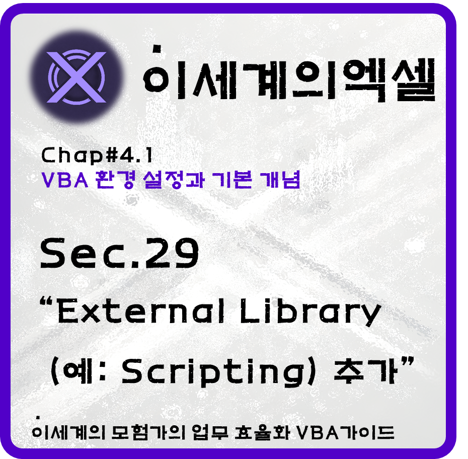 VBA는 원래부터 MS Office 애플리케이션 자동화를 위한 간단한 스크립팅 언어 성격이 강하다. 하지만 External Library(예: Scripting) 추가 방법을 숙지해 두면, 일반 프로그래밍 언어 수준으로 강력한 기능을 구현할 수 있다.